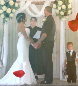 But on August 21st more than 100 people gathered to watch them finally walk down the aisle. The venue was stunning, Bear was gorgeous, and I’d never seen CJ look so handsome. Actually, he’s always handsome, I just never seen him dressed up! Their kids were all a part of the wedding, the youngest going as far as to steal the show! There was a “flower dude, a brides “man”, and a 20-person wedding party. It was a beautiful day for an outdoor wedding.